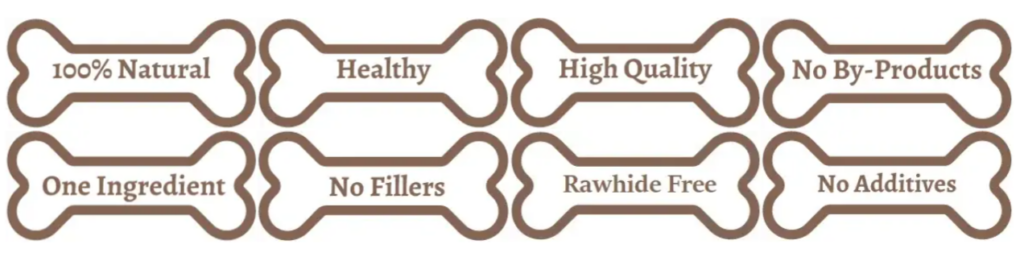 - Fully digestible one ingredient chews that are made out of the dermis layer of the cow skin.