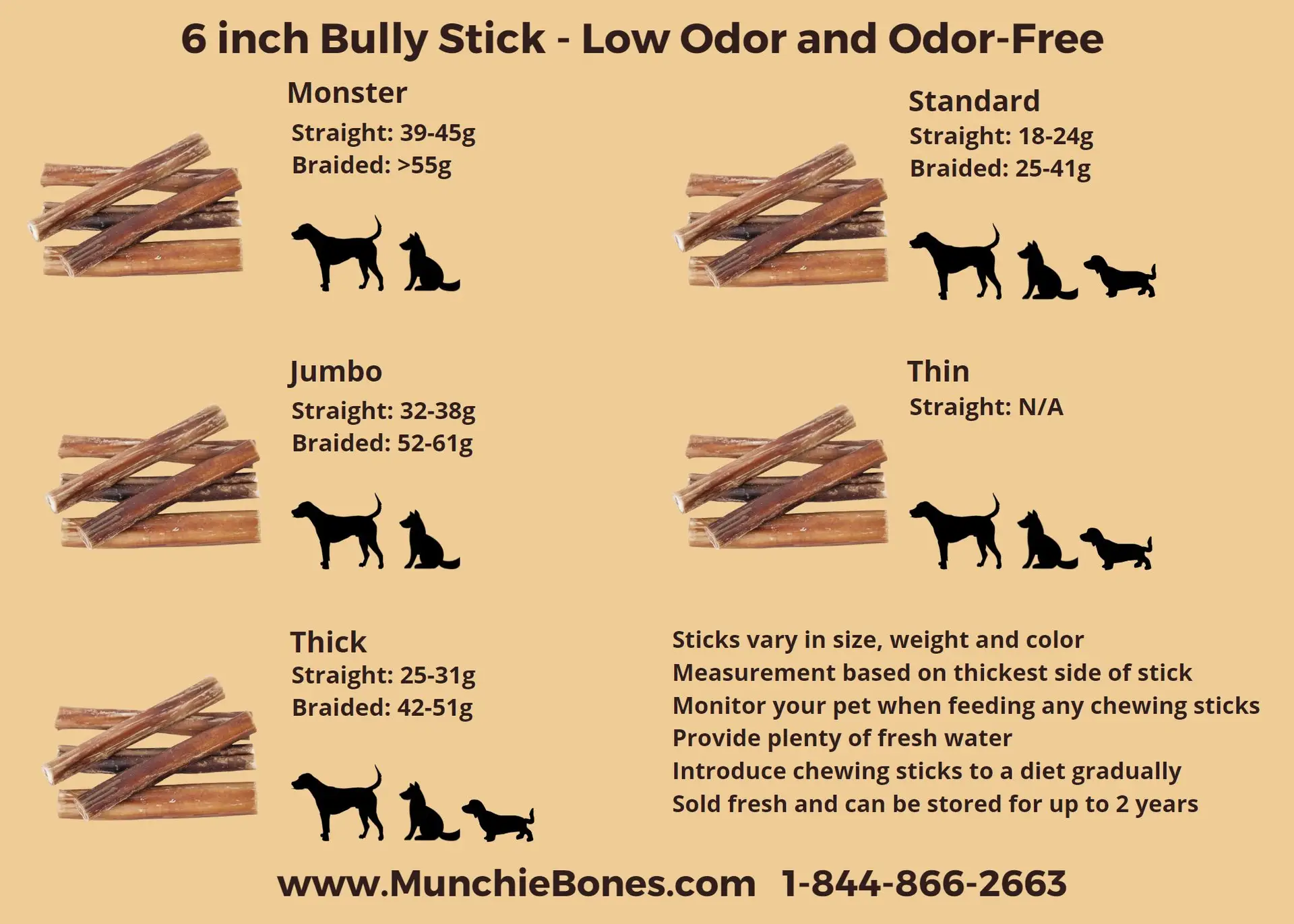 *** Beef Pizzle Bully Sticks are natural products and naturally vary in shape, weight, color, thickness.