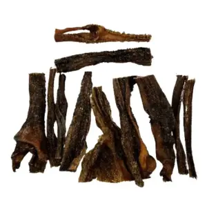 • Please note that each piece may vary in thickness, shape, weight, and color due to being a natural product. For dogs new to protein-rich chews, we recommend moderate consumption for the first 3-5 chews to avoid upset stomachs. We also recommend supervising your dog while they consume the treat and providing fresh drinking water.
